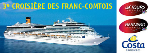 Venez me retrouver avec Jakino et toute notre équipe du 13 au 20 octobre 2014 pour une croisière en Méditerrannée à bord du Costa Fascinosa. Départ en bus de Montbéliard pour embarquement à Venise, puis escales à Bari, Corfou, Mykonos, Santorin et Dubrovnik. Spectacles assurés, animations garanties et bonne humeur obligatoire ! Pour télécharger la brochure compète, cliquez là : Croisière Franc-Comtoise Bernard 2014.pdf (849,6 kB).